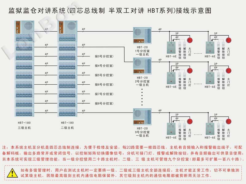 ● HBT-20主机**多可接20个光端机主接线盒;HBT-40主机**多可接40个光端机主接线盒;如**路主机,则以此类推。